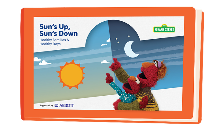 - Storybook — “Sun’s Up, Sun’s Down,” featuring healthy rhythms from a day in the life of Sesame Street’s furry friends and their families;