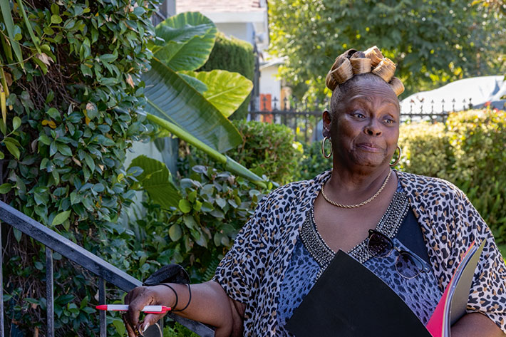 Kathleen Jones, a community health worker who provides diabetes education to her clients in Stockton.
