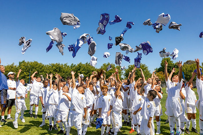 Kids at a soccer clinic on the University of Pacific campus that Abbott facilitated with Real Madrid.